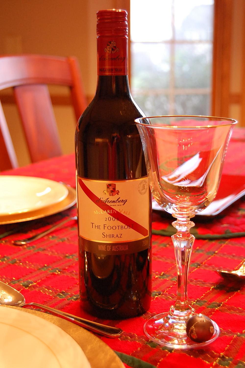 I had to move to Plan B. I remembered an 08 d’Arenberg The Footbolt Shiraz that we’d bought some time ago. Shiraz can be hearty and robust, with soft tannins and subtle oak. We noticed the flavors of this vintage were of a lightly spiced blackberry. On the palate was a hi mineral taste at first finish. It began to settle nicely into a hearty pepper- berry combination when paired with the warm richness of the beef and Yorkshire pudding.