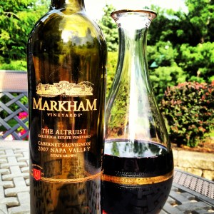 Tonight, to celebrate HubbyDoug, and both our fathers who’ve moved on to the great beyond, we chose a new wine for us ~ an ’07 Markham Vineyards The Altruist Cabernet Sauvignon. I fell in love with the full blackberry on the nose that I didn’t have to work too hard to get. It tasted of rich, black cherry, cassis, and alcohol (that didn’t make me cough). On the finish was a laid back caramel and vanilla. The mouthfeel was very creamy even though it was dry wine. And it made an amazing transition from our filet mignon with garlic mashed potatoes to strawberry | pineapple shortcake. I didn’t believe a dry, complex red could make that jump. But it did, and beautifully.