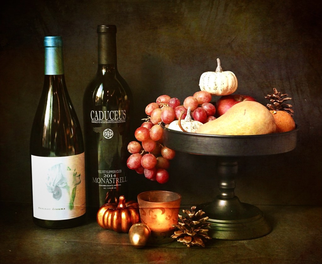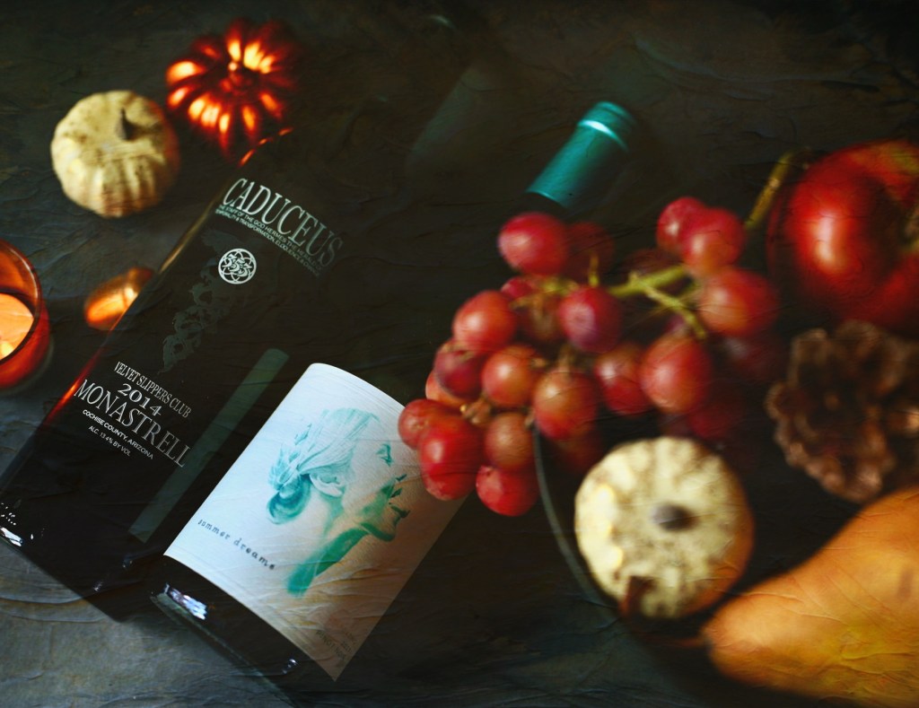 2014 Caduceus Monastrell – With its bold flavor profile, this could be called an ‘interesting’ choice for Thanksgiving dinner. Some skeptics might say that it’s way too overpowering. Monastrell (also known as Mourverdre) puts the ‘M’ in GSM wines. Typically, this can be considered a heavy hitter of wine; full bodied and tannic with deeply smoky, with flavors of blackberry bramble, tobacco, cocoa, black pepper. It pairs well with foods that reflect that: Barbeque and smoked meats. Think beefy Texan cookout rather than turkey with trimmings.